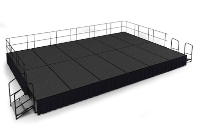 NPS 24" Stage Package, 16' x 24', Shirred Pleat Black Skirting, Grey Carpet (SG482412C02SS10)
