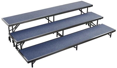 NPS 3 Level Straight Standing Choral Riser, Blue Carpet, 54"W x 60"-72"L x 24"H (RS3LC04)