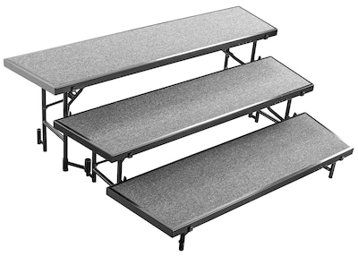 NPS 3-Level Tapered Standing Choral Riser, 54"W x 60”-72”L x 24"H, Grey Carpet (RT3LC02)