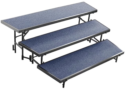 NPS 3 Level Tapered Standing Choral Riser, Blue Carpet, 54"W x 60"-72"L x 24"H (RT3LC04)