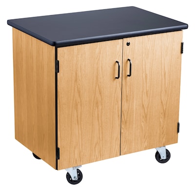 NPS® 36"H Mobile Science Cabinet With Adjustable Height Shelf, High Black Top/Light Oak Frame (MSC24361)