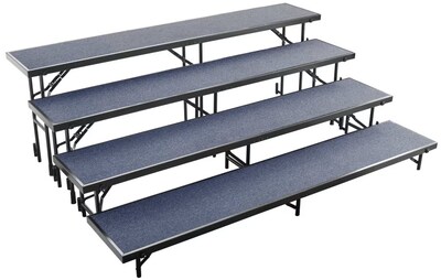 NPS 4 Level Straight Standing Choral Riser, Blue Carpet, 72"W x 60"-78"L x 32"H (RS4LC04)
