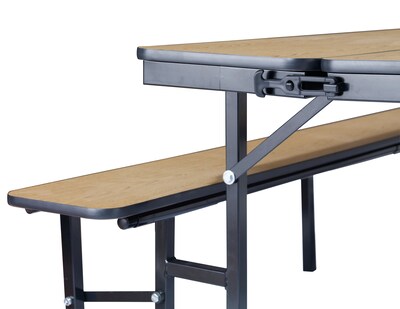 Convertible bench units can be used as a bench with a back or a table with a bench. They can also combine to form one large table using included ganging.