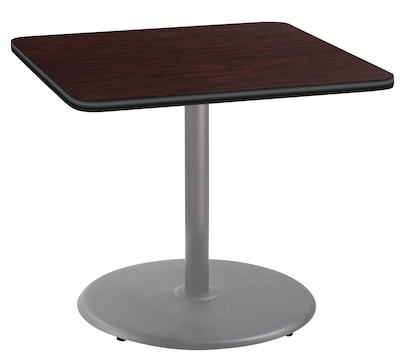 NPS CT Series Square Top Round Base Café Table, 36" x 36", Grey Frame/Mahogany (CTG33636RDPTMMY)