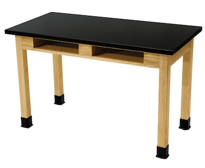 - Durable lab table features a high-pressure, black laminate surface