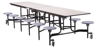 NPS Stool Unit Series, 12' Rectangular Cafeteria Table w/ 12 Stools; Grey Nebula Top/Grey Stools (MTS12MDPEPCGY02)