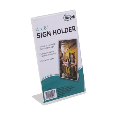 Nu-Dell Clear Plastic Sign Holder, Desktop, 4" x 6", Clear Plastic (NUD35446)