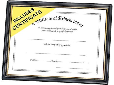 - Each frame includes two pre-printed certificates for your use - Achievement Certificate and Appreciation Certificate