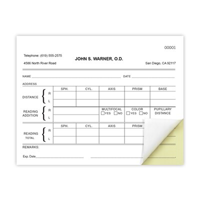 These eye care prescriptions have copies that can be torn out or stored in the book.