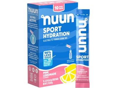 Nuun Sport Hydration Pink Lemonade Electrolyte Powder Drink Mix, 0.17 oz., 10 Packets/Box (12559317)