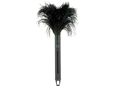 Remove dust and other particles with this feather duster. The ostrich feathers are flexible, so getting behind handles, getting inside slots and reaching other tricky spaces is simple, and they hold dirt and dust until shaken for easy cleanup. This O'Dell pop-top feather duster is 14-inches long when open, letting you take care of areas up high when needed.