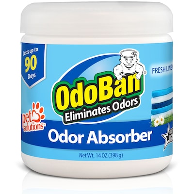 Ready to refresh a room in a flash" Our OdoBan Solid Eliminators for harsh scents and aromas are the quick and easy solution. These 14 ounce jars can be set in even small spaces including pet living spaces and near litter boxes, inside trash bins or bathrooms, inside closets. It works by trapping in harsh scents and emanating only its clean, fresh linen scent instead. Each pod can spread its longlasting scent for up to 90 days each, depending on the traffic of area flow in the area that it is placed. Make Life Fresh with OdoBan.