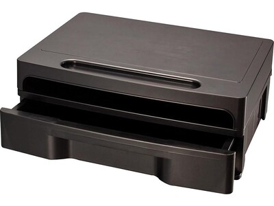 Make the most of a small desk with this Officemate black HIPAA-compliant one-drawer monitor stand.