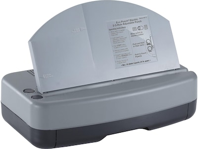 Process large stacks of documents easily with this OfficeMate Eco-Punch gray electric adjustable two-three- hole punch.