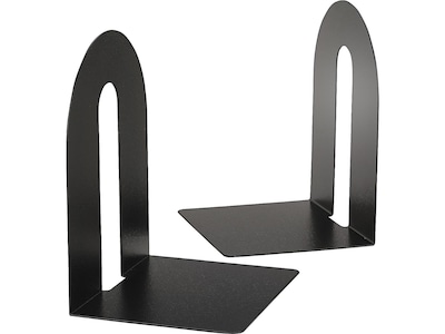Place these high black bookends on a desktop for supporting catalogs or books. This pair of 8-inch width Officemate heavy-duty bookends are made of steel for durability, and their slip-resistant bottom prevents them from skidding.