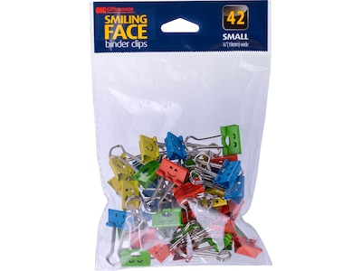 Officemate Smiling Face Small Binder Clips, 0.38" Capacity, Assorted Colors, 42 Clips/Pack (31090)