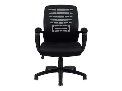 Go easy on your joints with this Offices To Go black mesh manager's chair. The back is made with synthetic mesh fabric for lightweight breathability and comfort, while the swivel and tilt features let you customize the chair to fit your body perfectly. This chair features a scuff-resistant arched base and twin-wheel carpet casters for easy rolling across multiple surfaces. With a generously proportioned waterfall-shaped seat that alleviates stress on your knees and the padded adjustable armrests that provide support for your elbows and shoulders, this Offices To Go black mesh manager's chair is ideal when you're working long hours at a desk or computer.