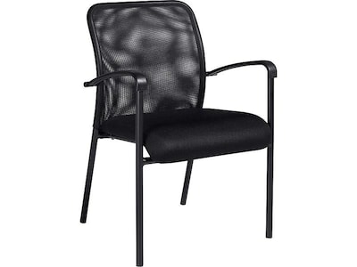 Use this black mesh guest chair to accommodate clients or to furnish waiting rooms and conference rooms. The mesh-fabric construction offers excellent breathability, so sitting for extended periods of time is comfortable, even in hot, humid environments. Fixed armrests help reduce strain on shoulders while providing support for forearms, and the waterfall cushion delivers comfort for legs. Constructed with a steel frame, this chair supports up to 250 pounds and stands up great against heavy use and wear and tear. This Global Luxhide mesh guest chair meets or exceeds ANSI and BIFMA standards and features a black finish that provides a sleek, sophisticated appearance.
