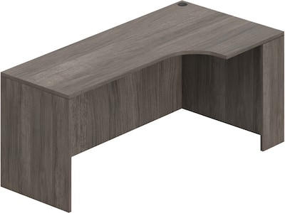 This contemporary Offices to go 71"W corner desk comes in an Artisan Gray finish. Its laminated surface is perfect for writing or using your laptop. The desk is L-shaped and features one cable management grommet on its right side for better organization.