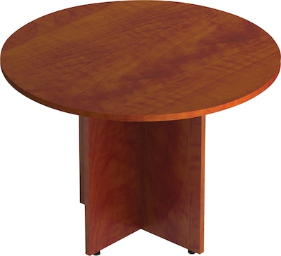 This 42-inch conference table features a round top and an X-shaped base, offering high-end appeal while remaining budget-friendly. Crafted in an American Dark Cherry finish, the SL42R table from the Offices To Go Superior Laminate collection is versatile, serving effectively in conference rooms, meeting spaces, and private offices.