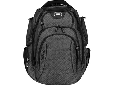 Minimize packing time and streamline your travel experience with this laptop backpack. A large main compartment fits clothes, toiletries, and other essential items, and a deluxe organization panel makes it easy to keep office supplies and other small items in order. The padded 15-inch laptop compartment and separate tablet sleeve keep important devices safe and secure. Featuring a soft-touch grab handle, adjustable ergonomic shoulder straps, and a hybrid unibody back panel, this OGIO Gambit laptop backpack helps you stay comfortable while carrying heavy loads.