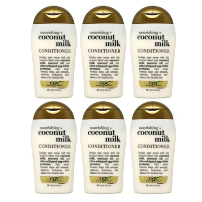 OGX Nourishing Coconut Milk Conditioner, 3 oz Bottle, 6 Bottles/Bag, 20 Bags/Carton