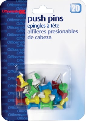 OIC Push Pins, Plastic, Assorted Colors, 20/Pack (OIC92600)