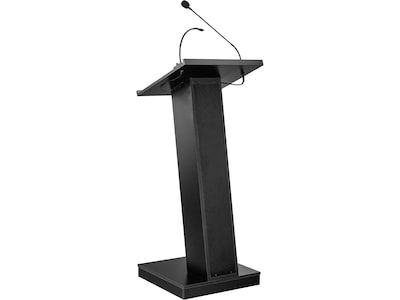 - Functional and modern floor lectern delivers both podium and sound in one durable unit