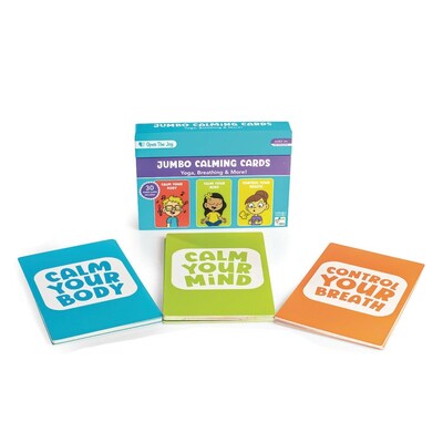 Help children learn to settle big emotions and keep their cool with these jumbo calming cards! Each card introduces a simple, effective tool — ranging from breathing patterns to yoga poses — that kids can use to pause, reset, or enjoy a mini brain break whenever they need it. Organized for easy learning, the cards are divided into three calming skill categories to help create calm in any situation: Control Your Breath, Calm Your Mind and Calm Your Body. Each card is large and durable — perfect for little hands and frequent use at home or in the classroom. Thoughtfully designed for kids and educators, each large, durable card features: A simple explanation of the calming strategy, written in kid-friendly language. Let’s Do: Step-by-step instructions for practicing the technique. Let’s Talk: A brief explanation of the skill and why it works. Teacher’s Tip: Extra ideas for further development or classroom use. Timer Icon showing the estimated time needed for the activity.