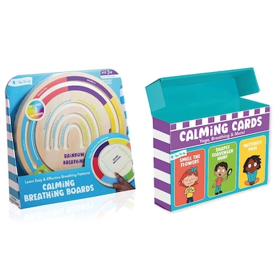 - Teach kids a range of calming techniques with a deck of 30 jumbo calming skill cards and 4 wooden breathing boards