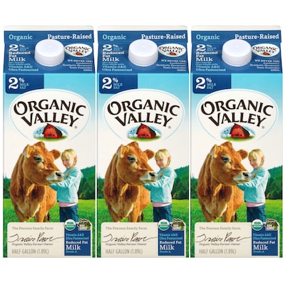 - A 3 pack of Organic Valley Reduced Fat 2% Ultra Pasteurized milk in 64oz cartons