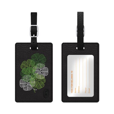 OTM Black Leather Bag Tag, Clovers