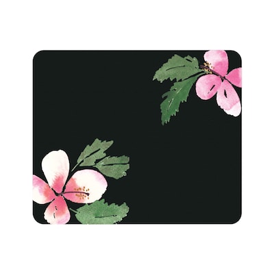 OTM Prints Black Mouse Pad, Hibiscus Pink and Green