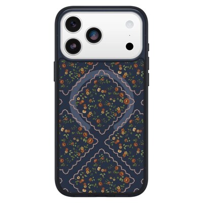- Made from polycarbonate and synthetic rubber for durability and impact protection, finished in Floral Romance (blue).
