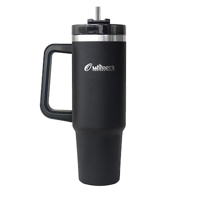 The Outdoors Professional 40-Oz. Black Tumbler's double-walled, vacuum-insulated technology will keep iced drinks cold for up to 48 hours, no-ice drinks chilled up to 11 hours, and hot drinks hot for up to 7 hours! No more settling for lukewarm sips or diluted flavors! If you’re on the go, this tumbler is built to fit any standard cup-holder. These tumblers are lightweight and durable. Crafted with stainless steel that is 100% BPA-free and nontoxic, this tumbler is built to withstand the rigors of everyday use, ensuring its durability for years to come. This tumbler features a screw-on splashproof straw lid to avoid spills and leaks. It's not only lightweight and easy to carry but super easy to clean. Hand-washing is a breeze as the wide mouth allows for effortless access to every nook and cranny. It's also dishwasher-friendly: simply toss it in, let the dishwasher work its magic, and have a sparkling clean tumbler!