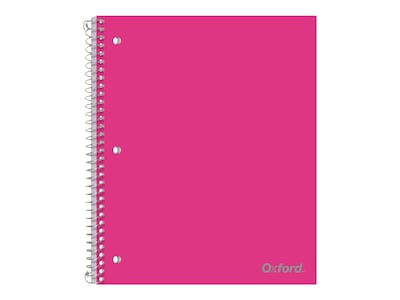 This Oxford one-subject poly notebook comes in bright colors with front pocket storage. The notebook is perforated, three-hole punched, and spiral-bound with a strong no-snag coil. Comes in assorted colors.