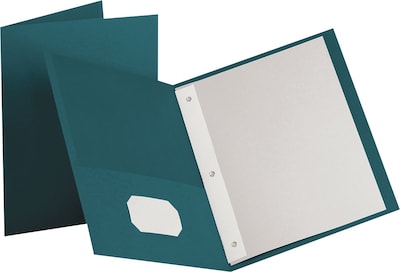 Oxford 3-Hole Punched 2 Pocket Paper Portfolio Folder with Fasteners, Teal, 25/Box (57755EE)