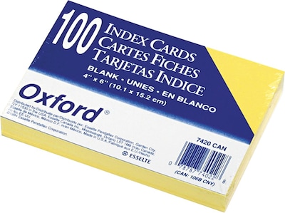 Oxford 4" x 6" Index Cards, Blank, Canary, 100/Pack (7420CAN)
