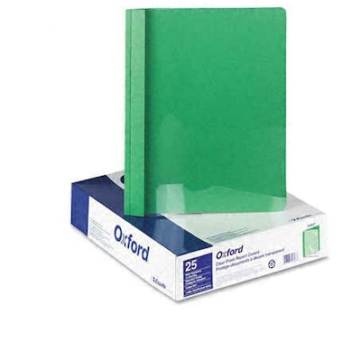 Oxford Clear Front Report Cover with Green Leatherette Back Cover, 8 1/2" x 11", 25/Box (55807EE)
