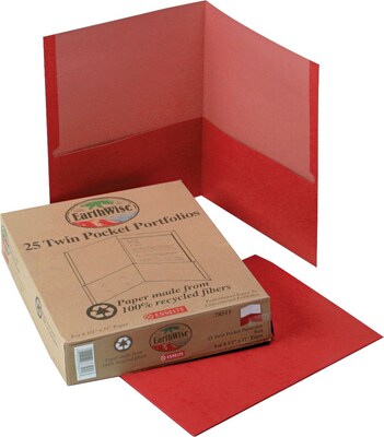 Oxford Earthwise 2-Pocket Portfolio Folder, Red, 25/Box (78511)