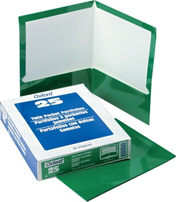 Oxford Linen 2-Pocket Portfolio Folders, Hunter Green, 25/Box (53434EE)