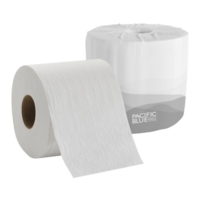 Pacific Blue Basic 1-ply inner wrapped embossed bathroom tissue economizes your bathroom supplies.