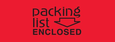 "Packing List Enclosed" Labels, Red, 3" x 2", 500/Rl