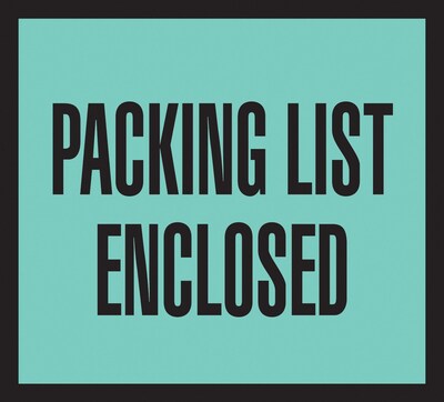 Green full-face "Packing List Enclosed" envelope measures 4 1/2" x 5 1/2" and has adhesive backing that sticks securely to the shipments. Envelope offers excellent resistance to oil and water, sold as 1000 per case.