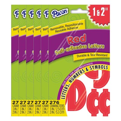 Pacon® 1 & 2" Self-Adhesive Classic Font Letters, Red, 276 Characters Per Pack, 6 Packs (PAC51659-6)