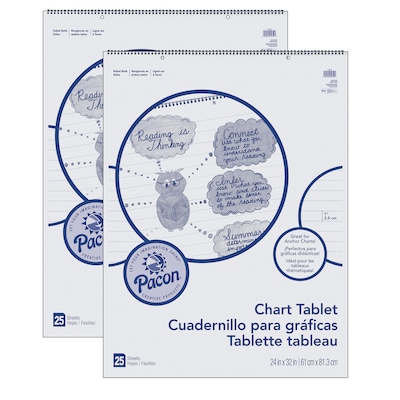 Pacon 24" x 32" Chart Tablet, Cursive Cover, 1" Ruled, 25 Sheets, 2 Tablets (PAC74610-2)