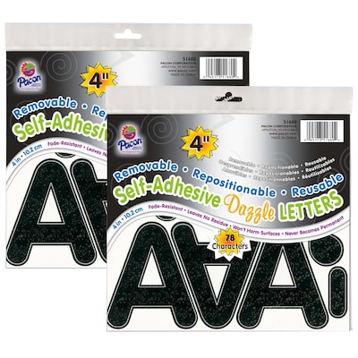 Pacon® 4" Self-Adhesive Puffy Font Letters, Black Dazzle, 78 Per Pack, 2 Packs (PAC51680-2)