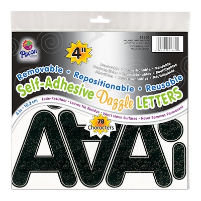 Pacon 4" Self-Adhesive Puffy Font Letters, Black Dazzle, 78/Pack (PAC51680)