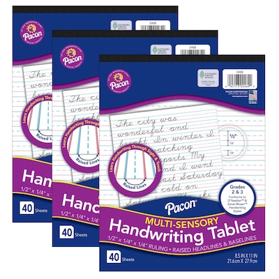 Pacon 8.5" x 11" Multi-Sensory Raised Ruled Tablet Writing Paper, 40 Sheets, Pack of 3 (PAC2469-3)