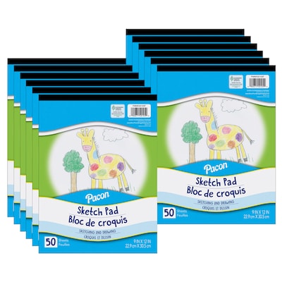 This Pacon® Sketch Pad includes 50 sheets of quality White drawing paper that is ideal for dry media. Acid-free and recyclable. Measures 9" x 12". Sold as a pack of 12 sketch pads.